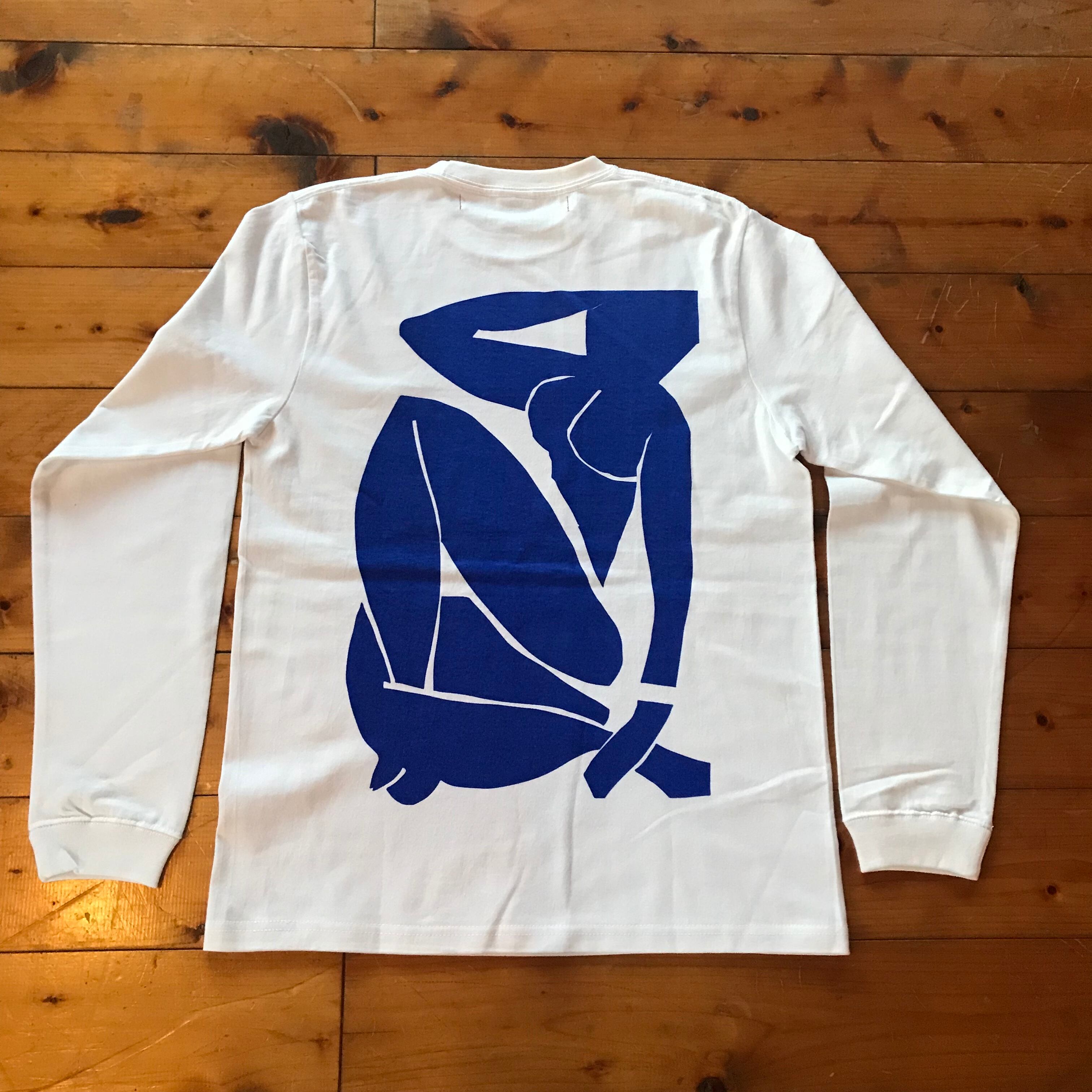 前回とても好評だった、ブルーヌードのプリントをロングティーシャツに施しました。
